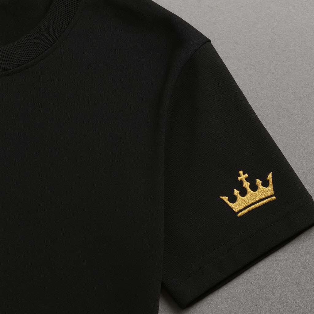 Each piece is embroidered with our signature gold crown, representing the process, faith, and mastery behind true success.